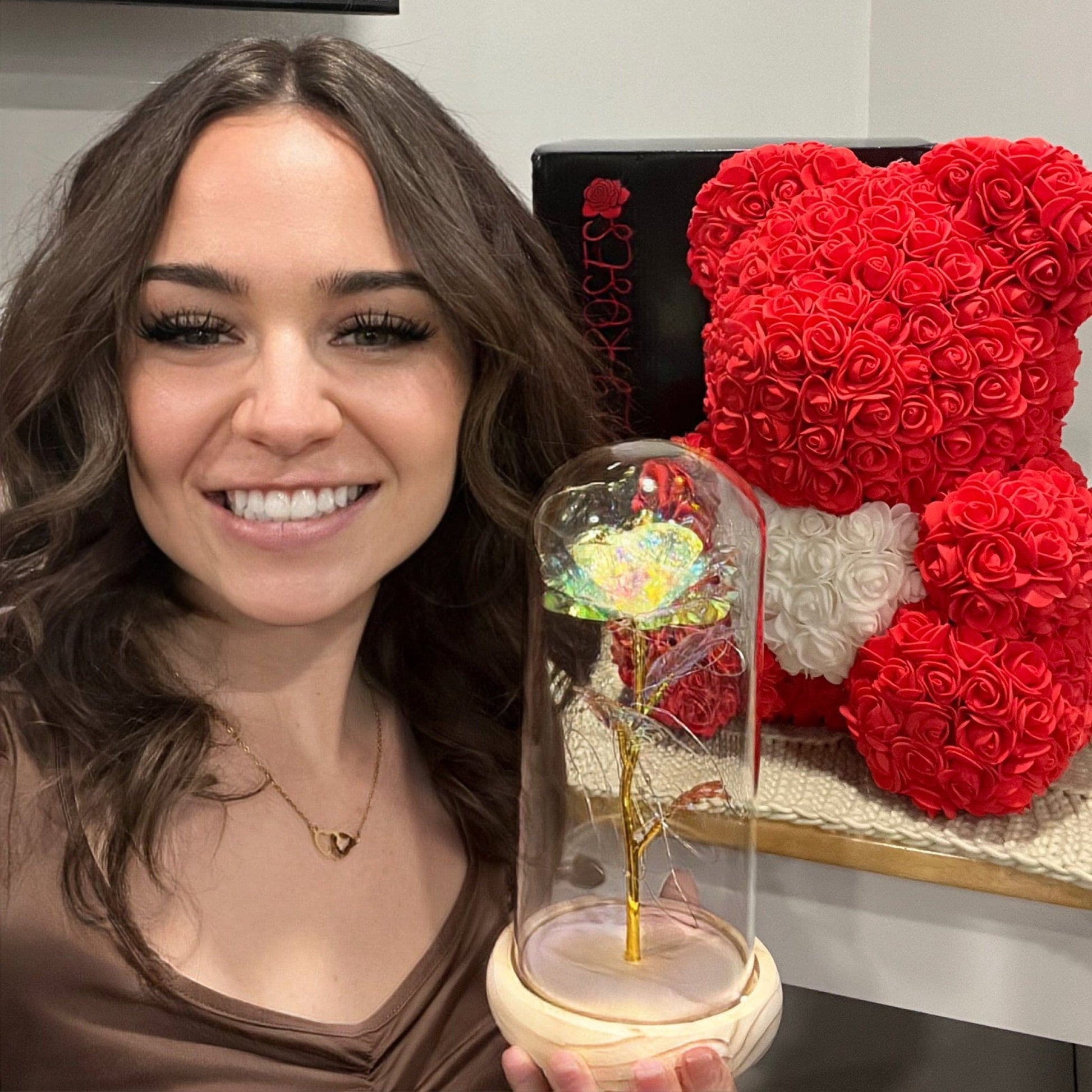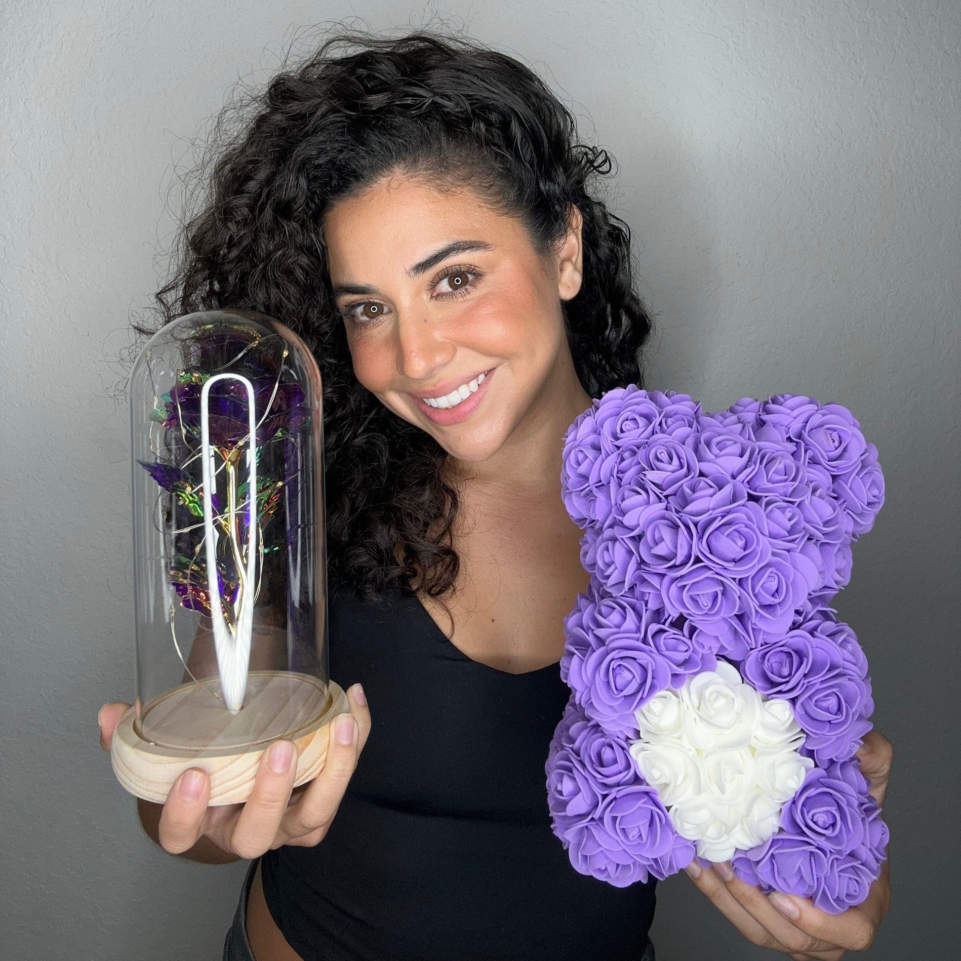 De LANZZI Love Heart Rose Teddy Bear combineert elegantie en sentiment, en combineert de schoonheid van rozen met de klassieke vorm van een teddybeer. Elke roos wordt zorgvuldig met de hand gerangschikt, waardoor een visueel verbluffend stuk ontstaat dat vanaf het eerste gezicht indruk maakt. Naast een charmante decoratie, dient het ook als een blijvend symbool van liefde en zorg.